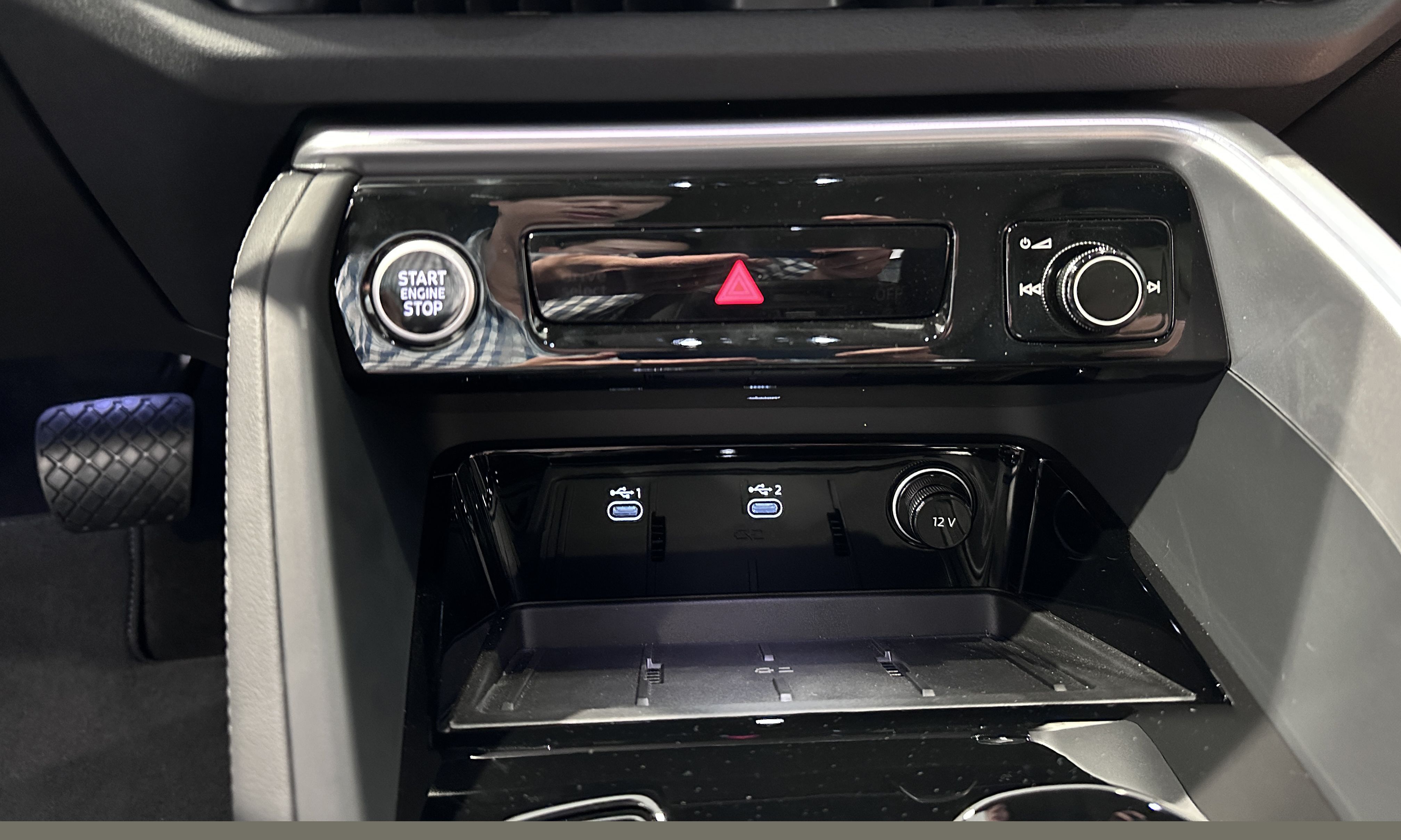 Khoang lái Audi Q5 trang bị ba màn hình, gồm đồng hồ kỹ thuật số 11,9 inch, màn hình giải trí trung tâm 14,5 inch và tùy chọn màn hình phụ 10,9 inch phía ghế hành khách. Cần số điện tử thiết kế tối giản, giống phong cách trên những mẫu xe BMW gần đây.