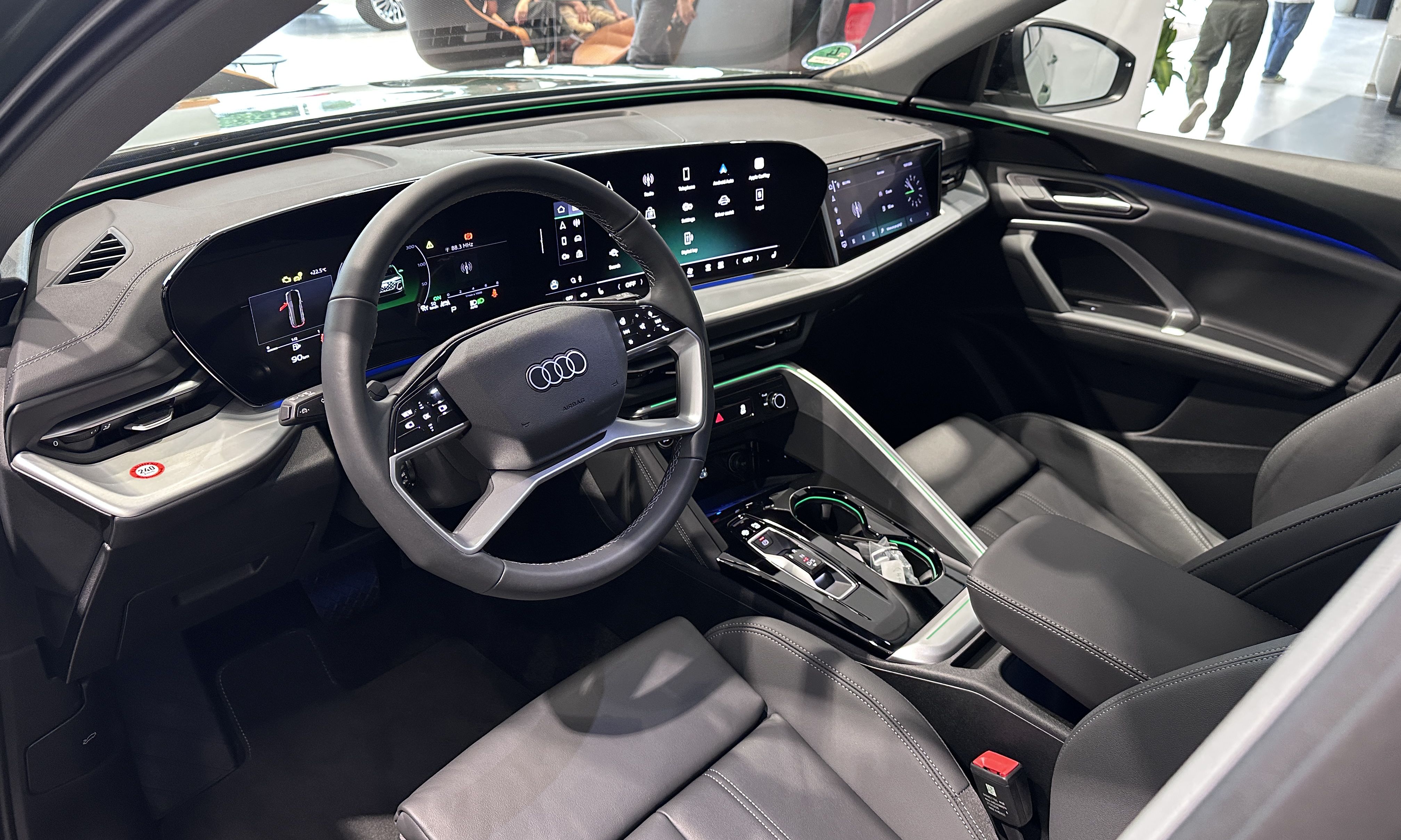 Nội thất là nơi Q5 thay đổi nhiều nhất. Khác kiểu đơn giản ở đời cũ, mẫu xe Audi ngập tràn màn hình cảm ứng. Các phím bấm cảm ứng, phát sáng trên thành cửa, vô-lăng cũng nhiều hơn trước.