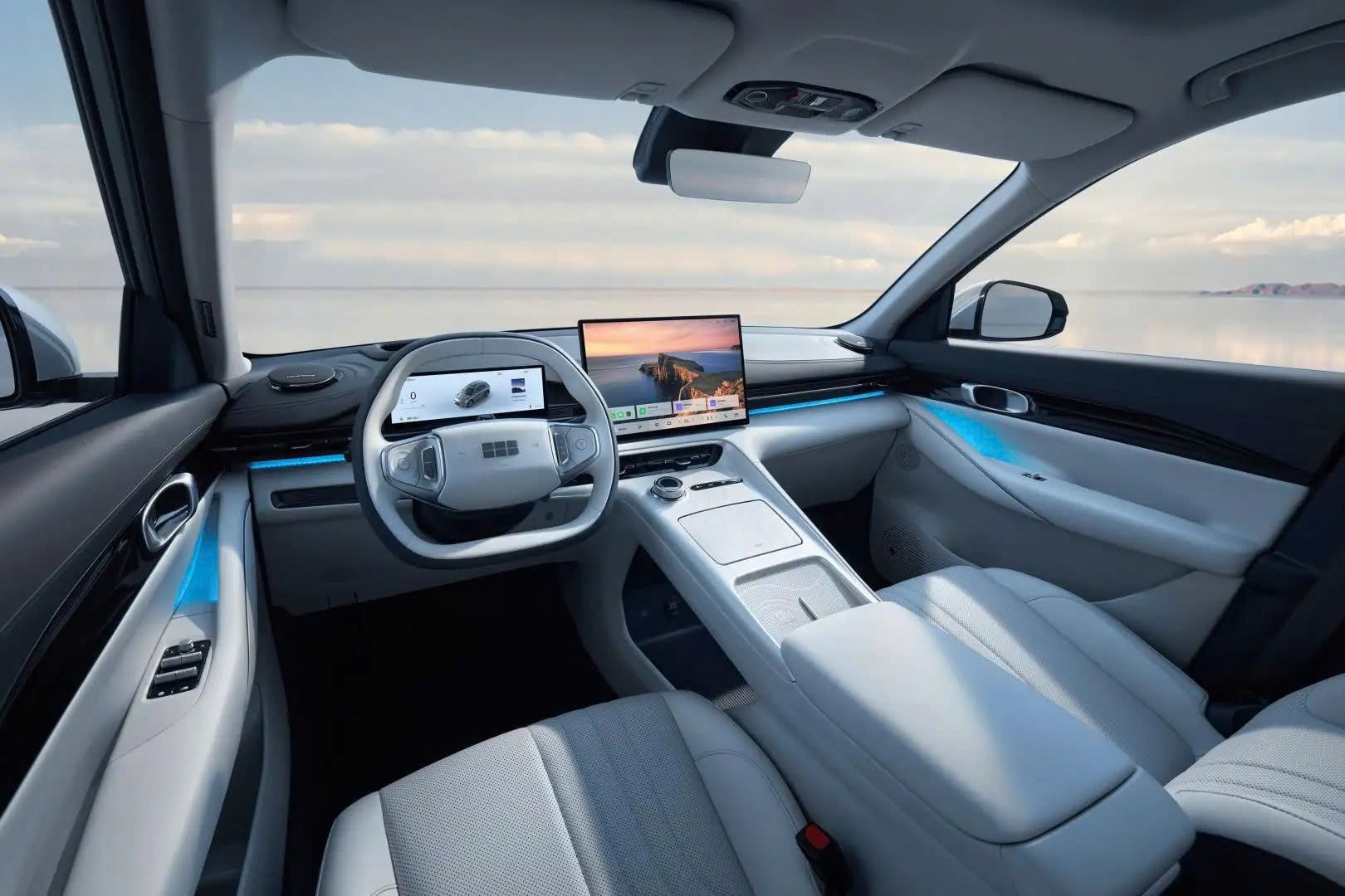 Ngược lại, nội thất của Geely EX5 đi theo hướng tinh giản nhưng vẫn đảm bảo đầy đủ tiện nghi. Xe sở hữu màn hình giải trí trung tâm kích thước lớn đặt cố định và bảng đồng hồ hiển thị thông tin lái rõ nét.