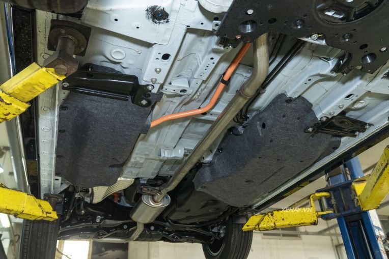 Tuy nhiên, cái "chất" thực sự lại nằm ở những thứ mắt thường ít thấy. Đưa xe lên cầu nâng, toàn bộ phần gầm xe từ tấm ốp bảo vệ khoang máy đến các chi tiết chịu lực như càng chữ A, rotuyn lái hay hệ thống láp đều có số đo và kích thước trùng khớp với bản nhập khẩu.