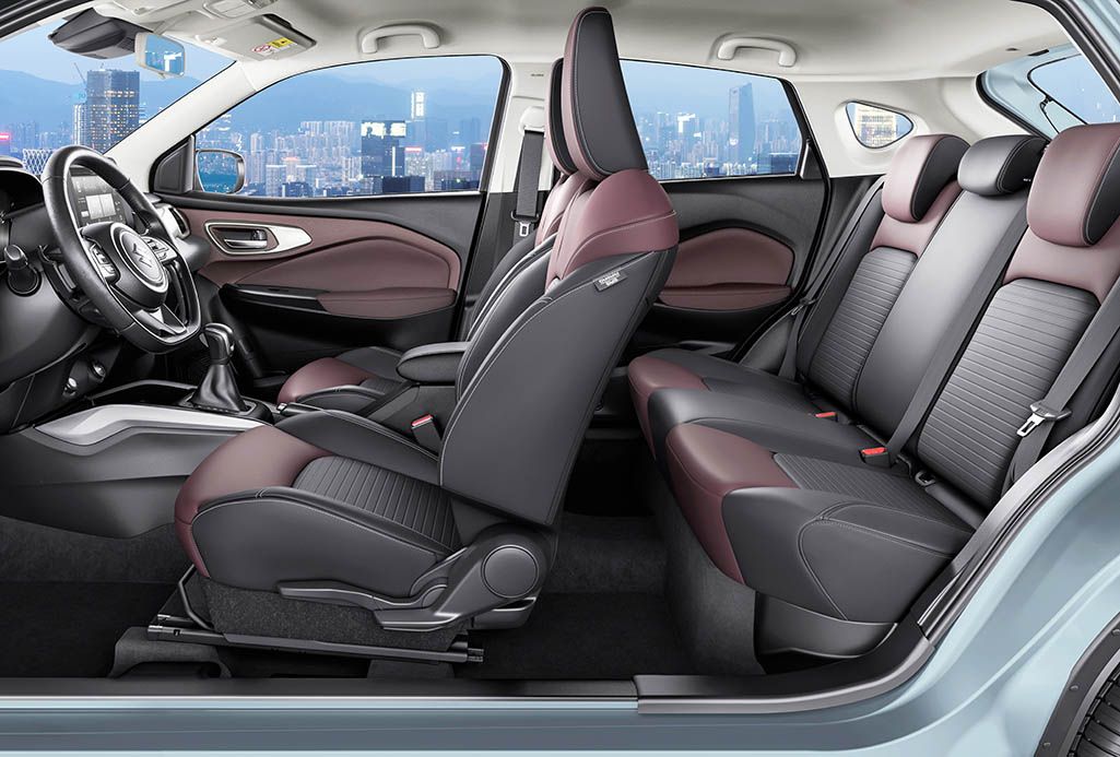 Trái ngược với vẻ ngoài nhỏ nhắn lanh lẹ, khoang nội thất của Suzuki Fronx được tối ưu một cách rất khoa học để đem lại không gian thoáng đãng. Trục cơ sở dài 2.520 mm và chiều rộng tổng thể của xe đạt 1.765 mm giúp cho người ngồi ở cả hai hàng ghế đều cảm thấy hài lòng. Khoảng để chân đủ dùng với người cao khoảng dưới 1,8m. Khoảng khoáng giữa đầu hành khách - trần xe khá hợp lý và độ ngả lưng ghế chấp nhận được. Cốp chứa đồ tiêu chuẩn của xe đạt thể tích lên tới 304L, hoàn toàn đủ dùng cho gia đình với 2 trẻ nhỏ trong những chuyến đi ngắn ngày hoặc 2 người lớn sử dụng xe đi trip dài 3 - 5 ngày.