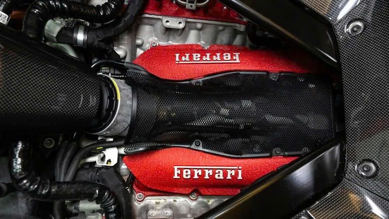 Cụm động cơ V8 tăng áp kép và các mô-tơ điện trong khoang máy Ferrari 849 Testarossa.