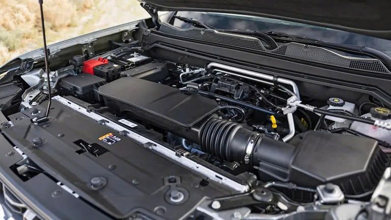 Canyon AT4X sử dụng động cơ xăng 2.7L tăng áp 4 xi-lanh, cho công suất 310 mã lực và mô-men xoắn 583 Nm, kết hợp hộp số tự động 8 cấp và hệ dẫn động 4 bánh.