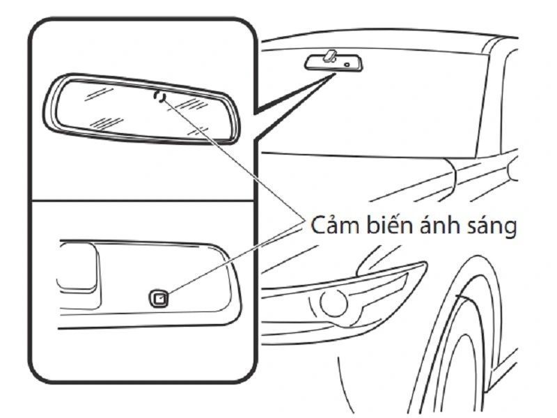 - Cảm biến phía sau: Hướng về phía sau, đo cường độ ánh sáng chiếu trực tiếp vào gương (từ đèn pha xe sau).
