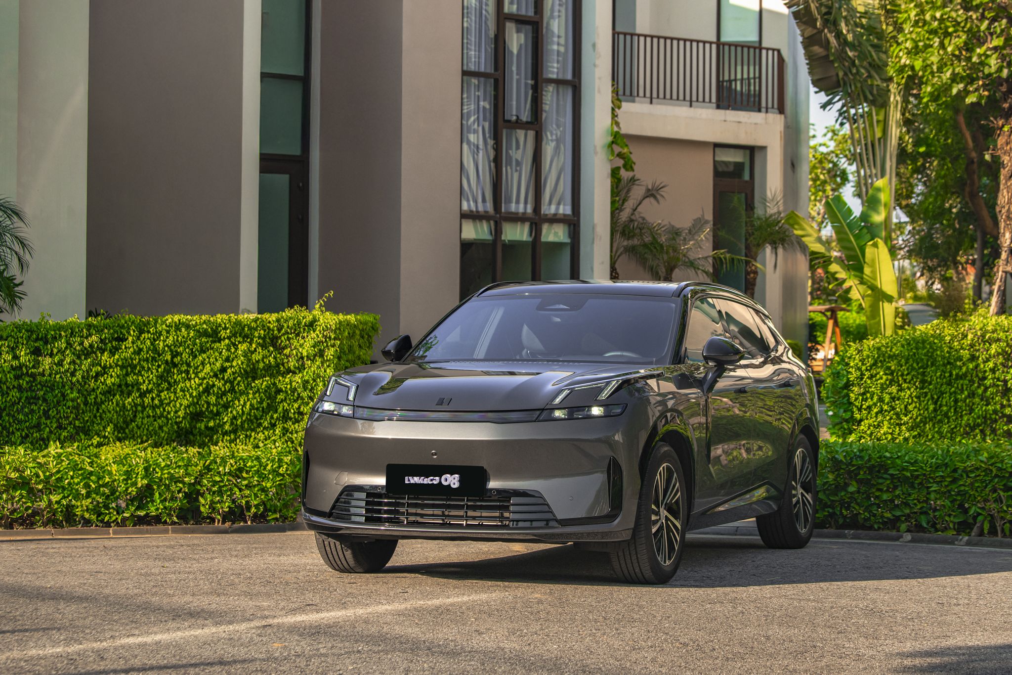 Trái lại, Lynk & Co 08 mang phong cách SUV lai Coupe hiện đại và phá cách hơn.