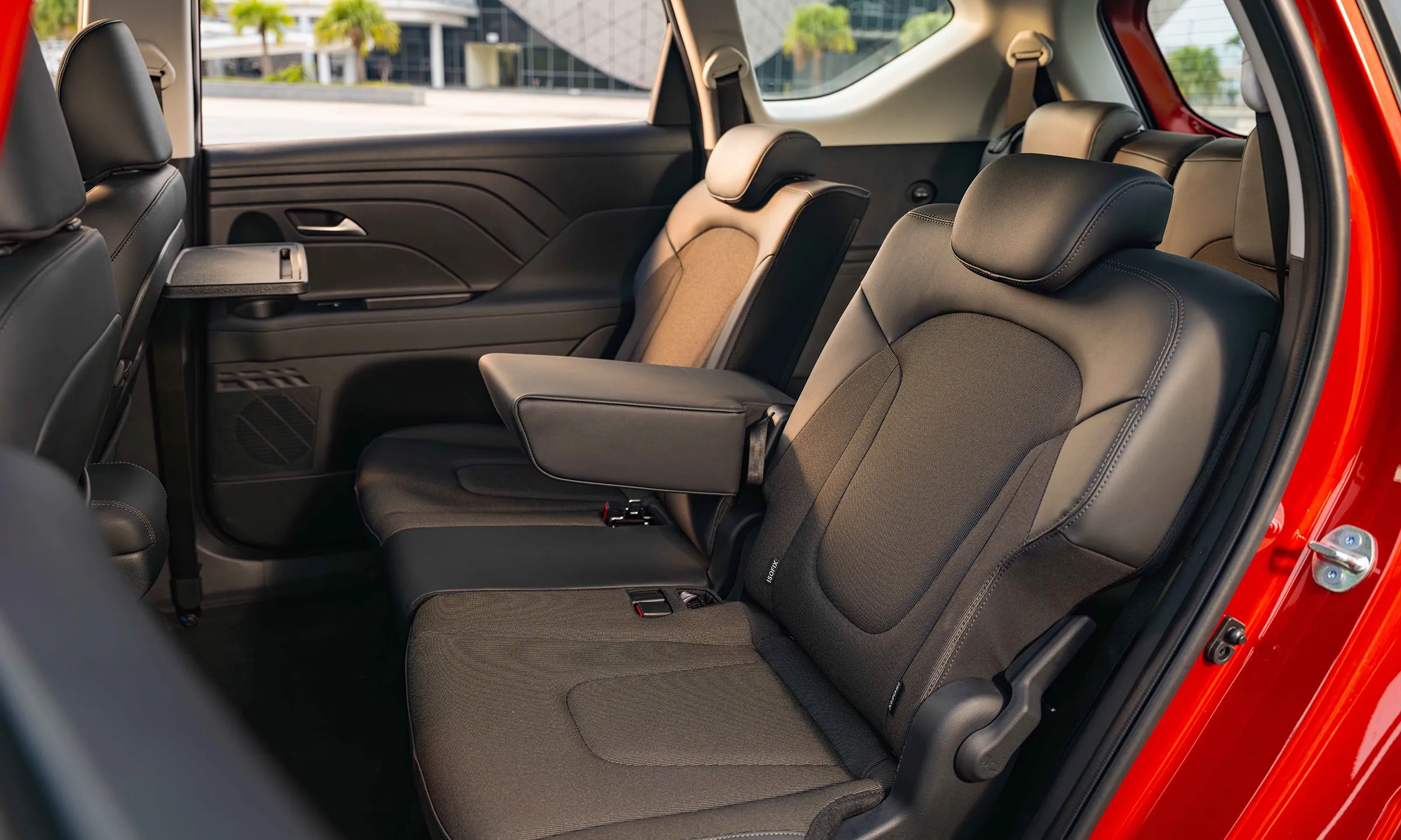 Toàn bộ ghế trên Geely EX5 hybrid bọc da, hàng ghế trước chỉnh điện, ghế lái có nhớ ghế, tựa đầu tích hợp thêm loa giúp người lái nghe chỉ dẫn bản đồ hoặc nghe gọi mà không làm gián đoạn nhạc của những người còn lại. Trần xe trang bị cửa sổ trời toàn cảnh.