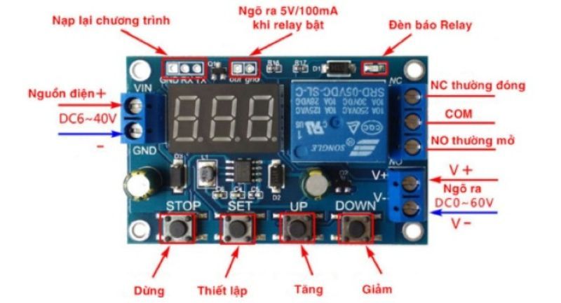Là mạch điều khiển sạc, xả pin tự động sau khi cài đặt. Mạch có thể thiết lập theo thời gian, theo điện áp giới hạn. Ngoài ra mạch có chân giao tiếp UART có thể theo dõi trạng thái làm việc của Relay (đóng/ ngắt) theo thời gian thực. Mạch có bảo vệ ngược cực an toàn.
