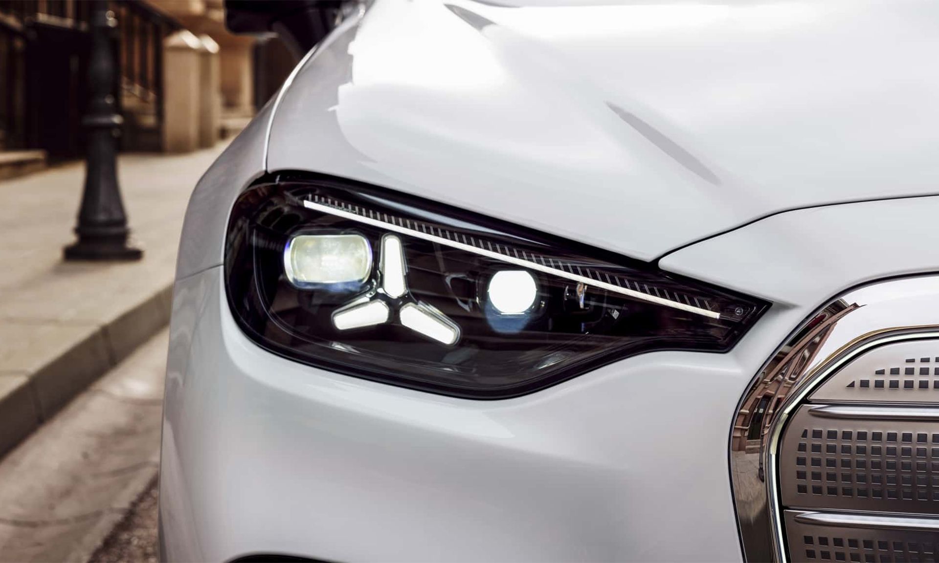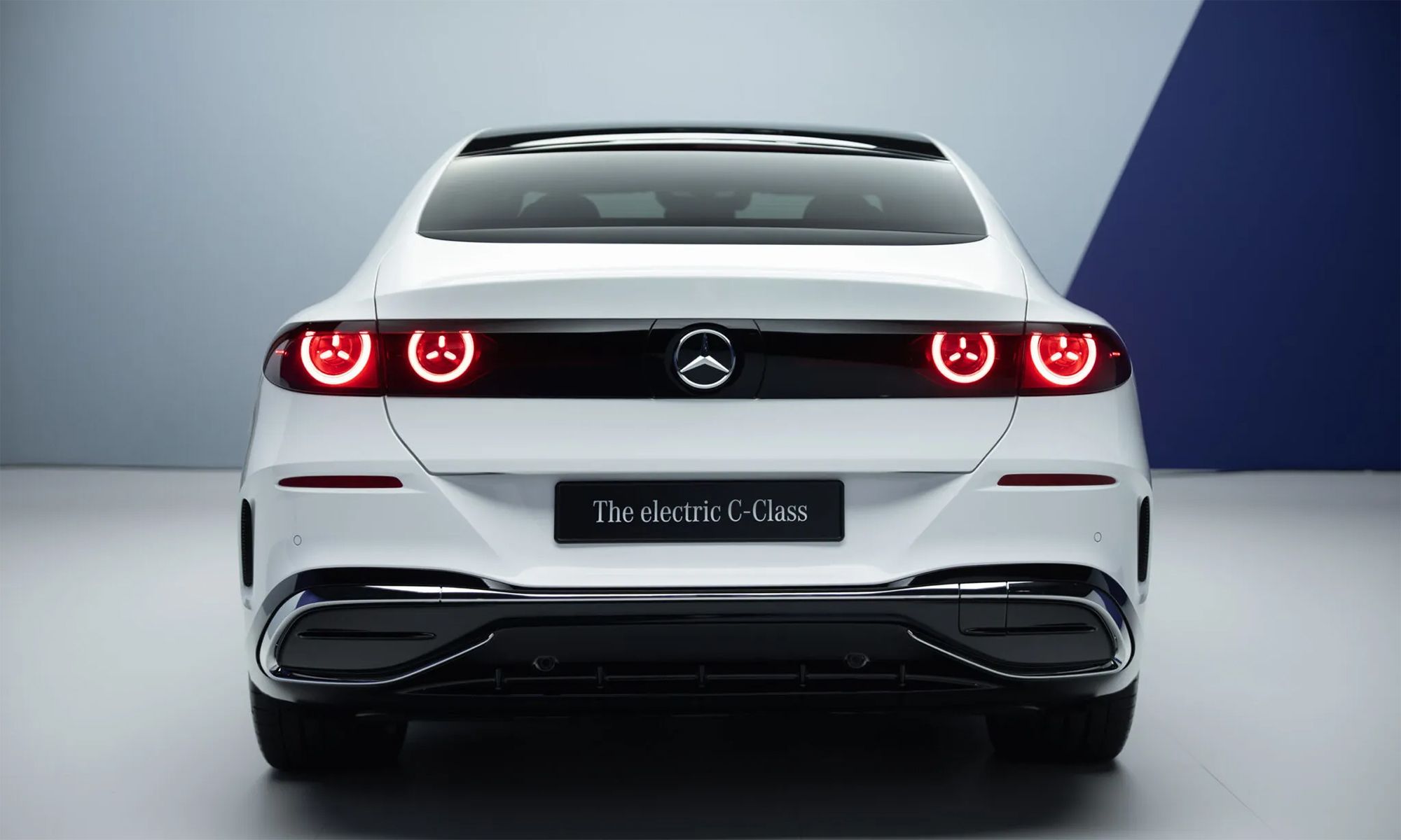 Ngoại hình C-class Electric tương tự người anh em GLC, với 1.050 đèn LED nhỏ bên trong lưới tản nhiệt và đèn pha biểu tượng ngôi sao ba cánh khắc chìm bên trong. Cụm đèn hậu LED cũng tương tự. Tổng thể thiết kế của C-class Electric mang kiểu dáng coupe.