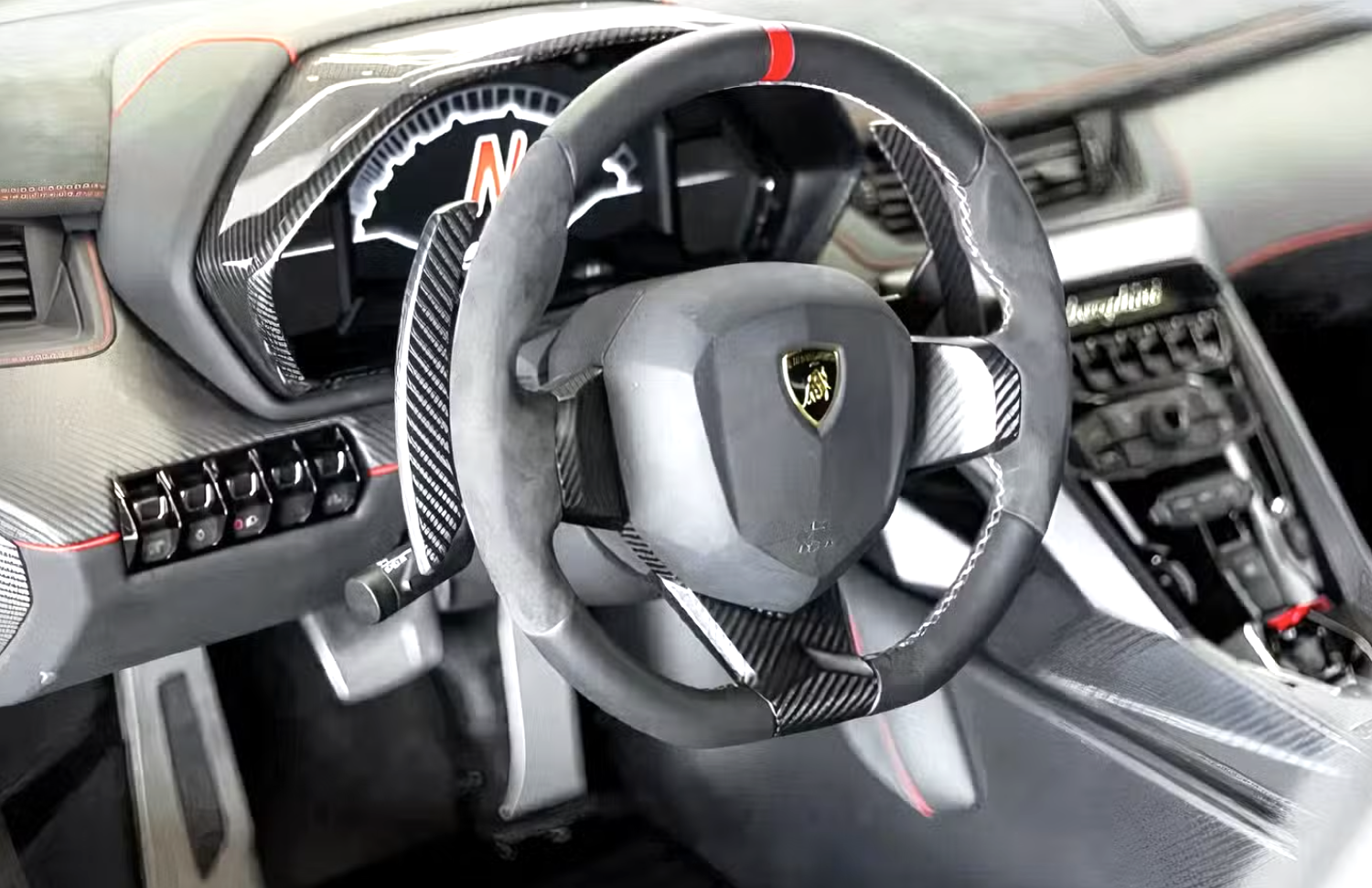 Nội thất của Veneno tối giản nhưng tập trung vào hiệu suất, với sự kết hợp giữa Alcantara và da, ghế chỉnh tay, lưng ghế điện và thậm chí có gắn Isofix cho ghế trẻ em, thêm một chút tiện dụng hiếm thấy trên một siêu xe 220 mph.