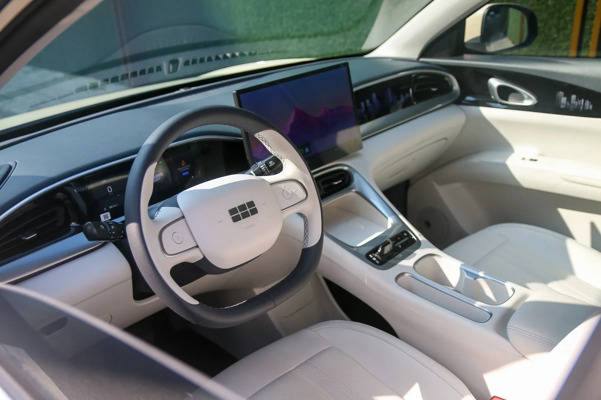 Sự khác biệt về phong cách thiết kế thể hiện rõ ở khu vực nội thất. Có thể thấy nhờ trội hơn về chiều rộng và kiểu sắp xếp nội thất không liền mạch, không gian cabin của Atto 2 có chiều ngang thoáng hơn. Với kiểu sắp xếp yên ngựa của EX2 và những đường bo tròn tạo sự liền mạch và mềm mại, người ngồi ghế phụ sẽ có cảm giác hơi hẹp ở khoảng để chân 2 bên. |