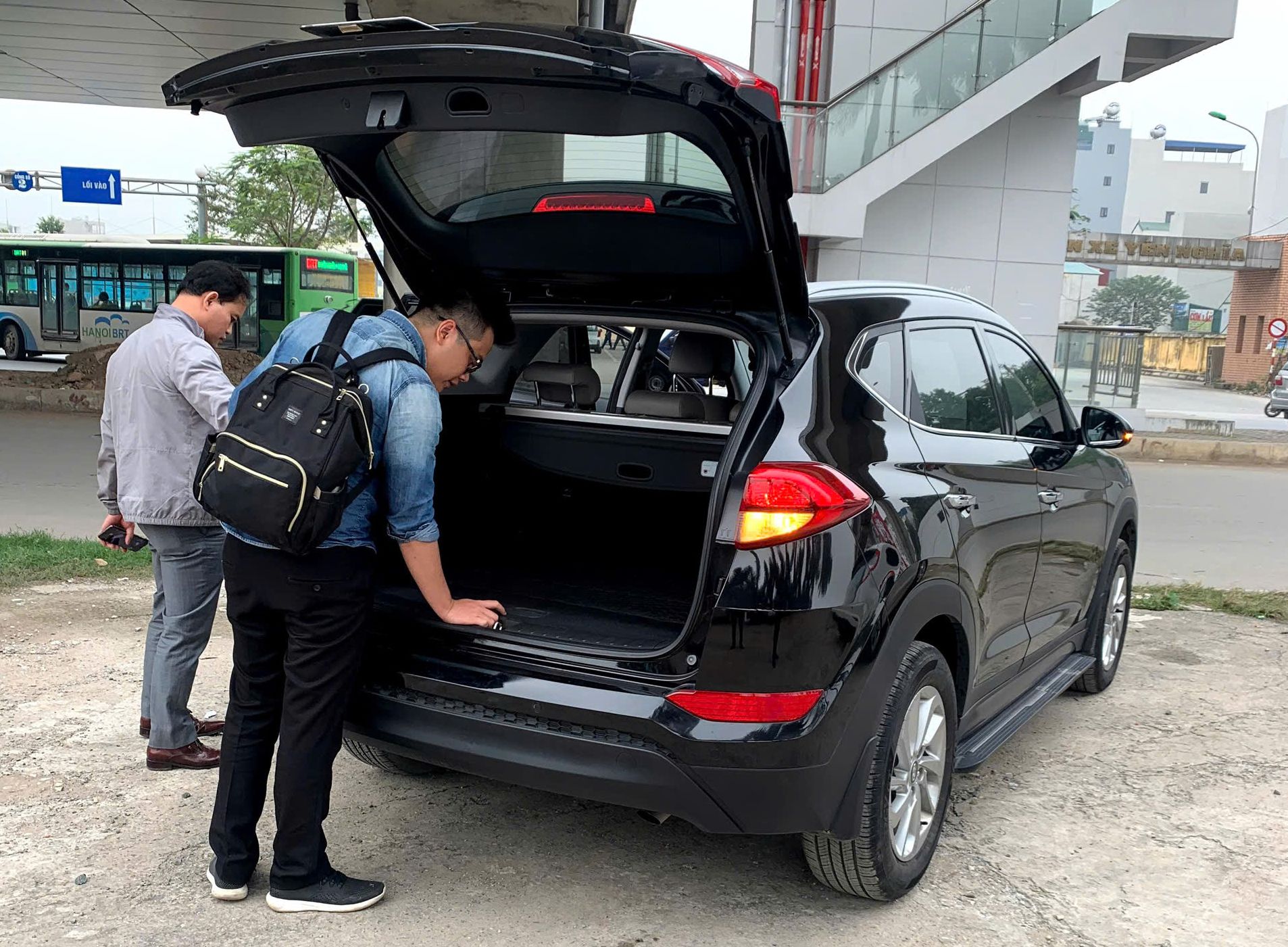 Khách hành thuê xe tự lái kiểm tra xe trước khi nhận xe về.