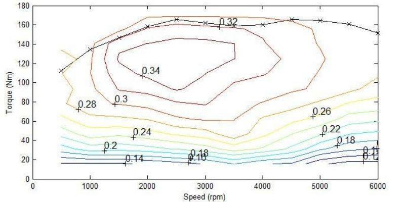 Hình 2: Biểu đồ hiệu suất của động cơ máy xăng.