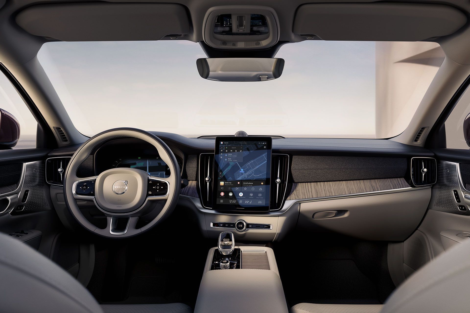 Không gian nội thất của S90 không có nhiều thay đổi nhưng được cập nhật vật liệu và công nghệ. Dù vậy, nâng cấp đáng giá nhất nằm ở hệ thống thông tin giải trí khi tích hợp hệ điều hành của Google, cải tiến này giải quyết triệt để vấn đề độ trễ trên các thế hệ cũ.