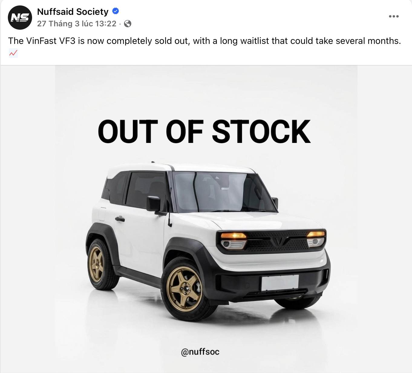 Sự thành công của VinFast tại thị trường Philippines thể hiện rõ rệt qua sức nóng của các sản phẩm, đặc biệt là mẫu SUV mini VF 3. Vào giữa tháng 3, hàng loạt trang tin về xe ở quốc gia này thông báo chiếc xe điện mini đã cháy hàng toàn bộ, cầu vượt cung.
